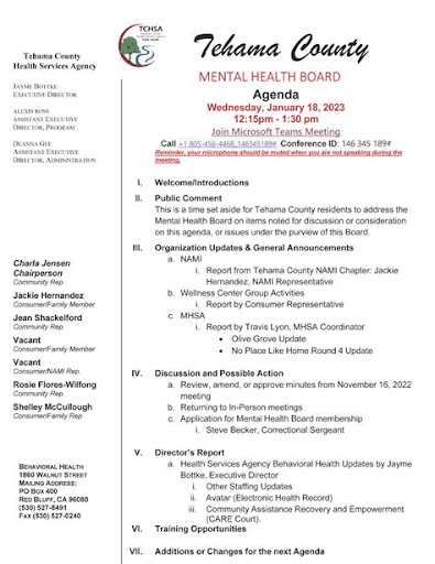 - Tehama County recognizes the significance of mental health and has taken a proactive stance in addressing the needs of its residents.